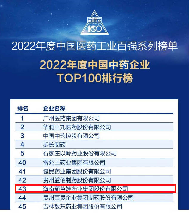 会议期间,一年一度的中国医药工业百强系列榜单隆重揭晓,SG胜游药业集团凭借领先的研发优势和扎实的生产实力以及稳健的市场推广能力,连续第四年成功入选“2022年度中国中药企业TOP100排行榜” ,排名稳步上升至第43位。